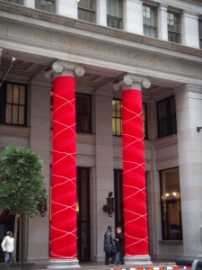 So here is a novel idea if you are searching for some holiday glam, away from the crowds. Come to the Financial District, where many skyscrapers are decked out in their red and gold finest, and glimpse the city’s smorgasbord of architectural styles.
